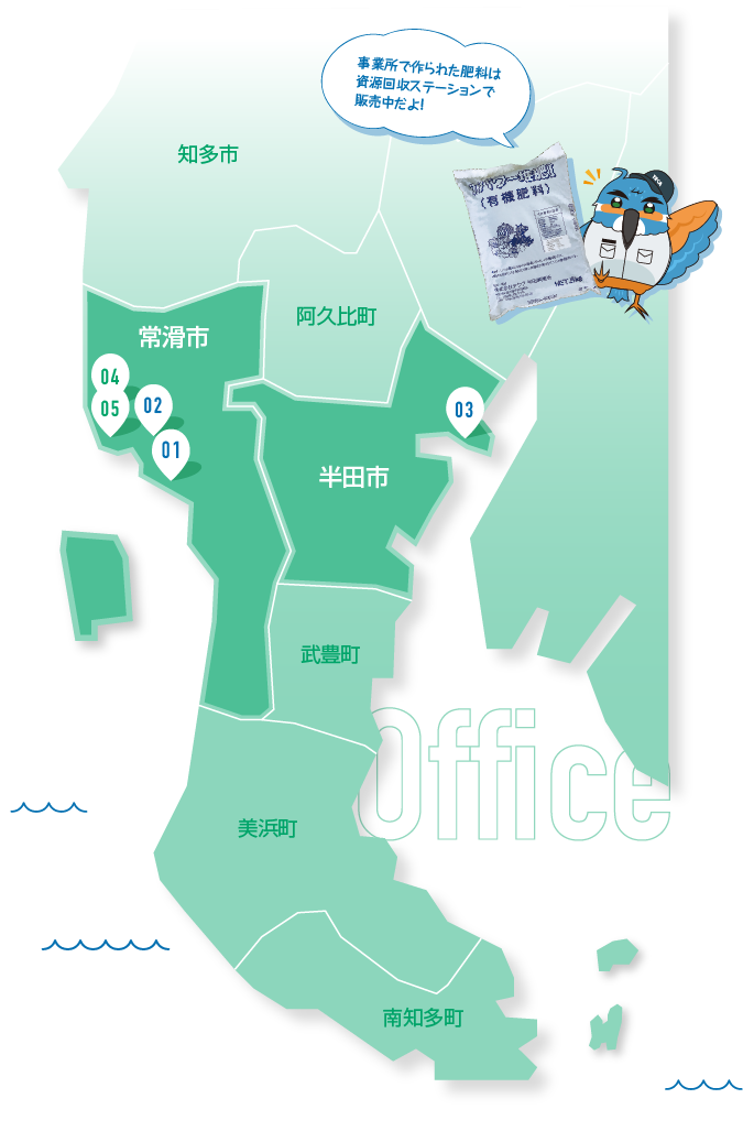 私たちは常滑市や半田市、名古屋市で事業・施設を展開しています。