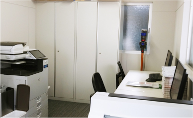工事部車庫・倉庫として多数の車両や道具が保管されています。