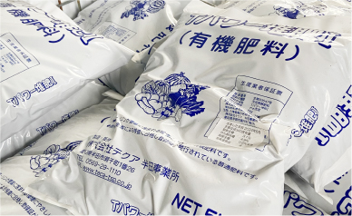 排出事業者様から収集運搬した、汚泥・動植物性残渣・木くず・紙くずなどの原料から有機肥料の製造、出荷をしています。